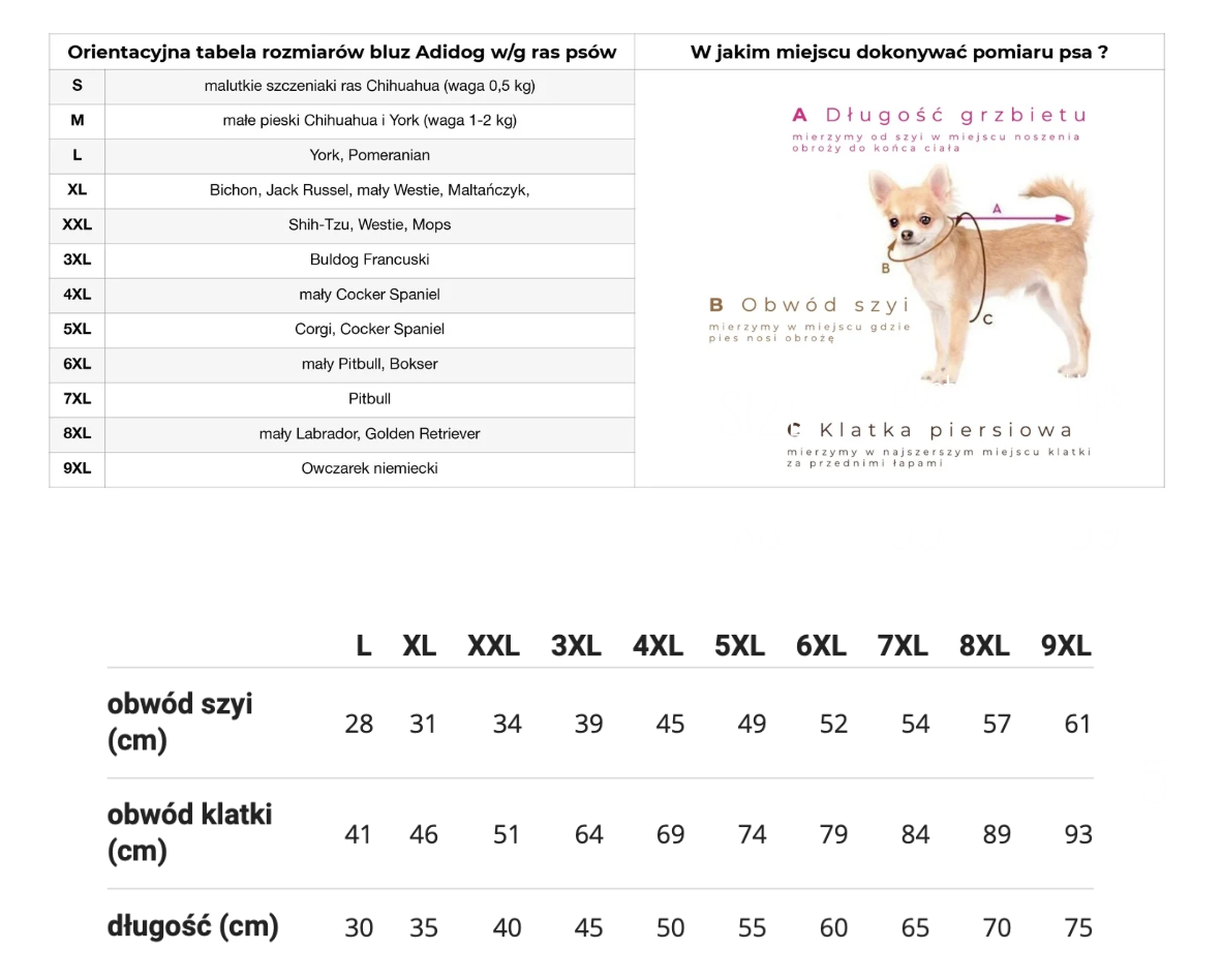 JAK ZMIERZYC PSA? JAK DOBRAĆ ODPOWIEDNI ROZMIAR BLUZY?