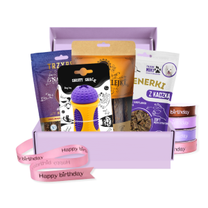 Liliowy Box urodzinowy dla suczki