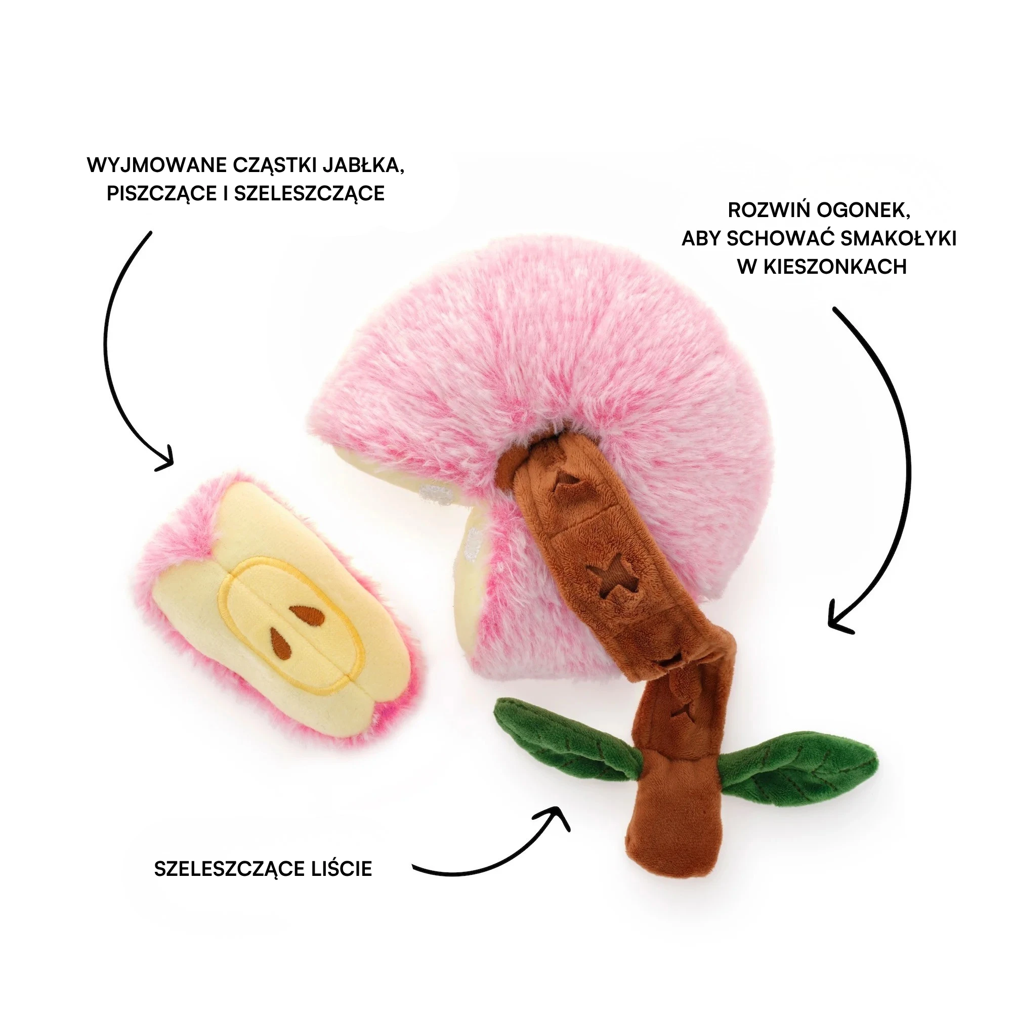 Szeleszczące i piszczące pluszowe jabłko, w którym ukryjesz smaczki.