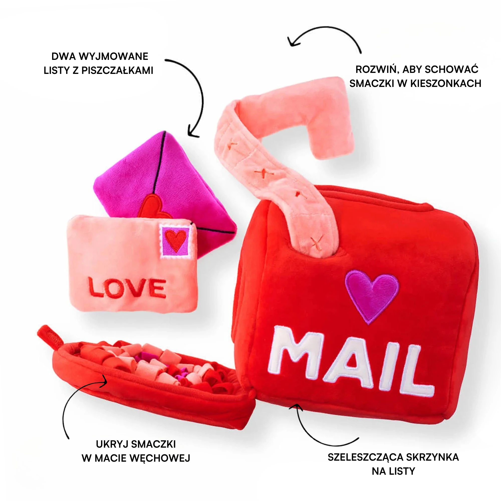Szeleszcząca skrzynka na smaczki z piszczącymi listami miłosnymi!