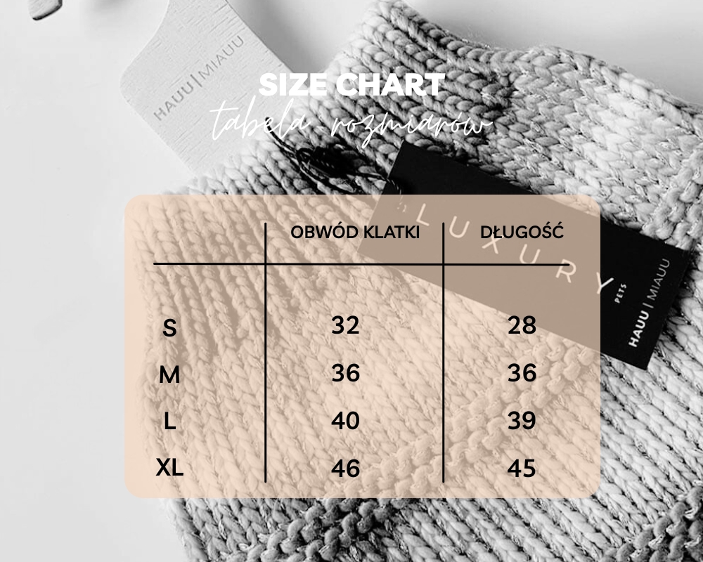 Luksusowy sweterek w wyjątkowym wydaniu. "Grubo" dziergana dzianina sweterkowa, przeplatana złota nitką. Fenomenalny efekt! Ubranko zapewni Twojemu Pupilowi nie tylko ochronę przed chłodem, ale również niesamowity look! Sweterek do wkładania przez główkę, wykończony przy szyjce półgolfem, bez rękawków. Posiada praktyczne wyprofilowane wycięcie w dolnej części brzuszka. Ciepły, gruby i bardzo miły w dotyku.