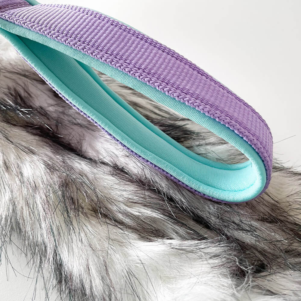 - Szarpak wykonany z sztucznego futerka oraz miękkiej taśmy rurowej. Rączka podszyta jest miękkim, piankowym materiałem, niezwykle komfortowym dla rąk.