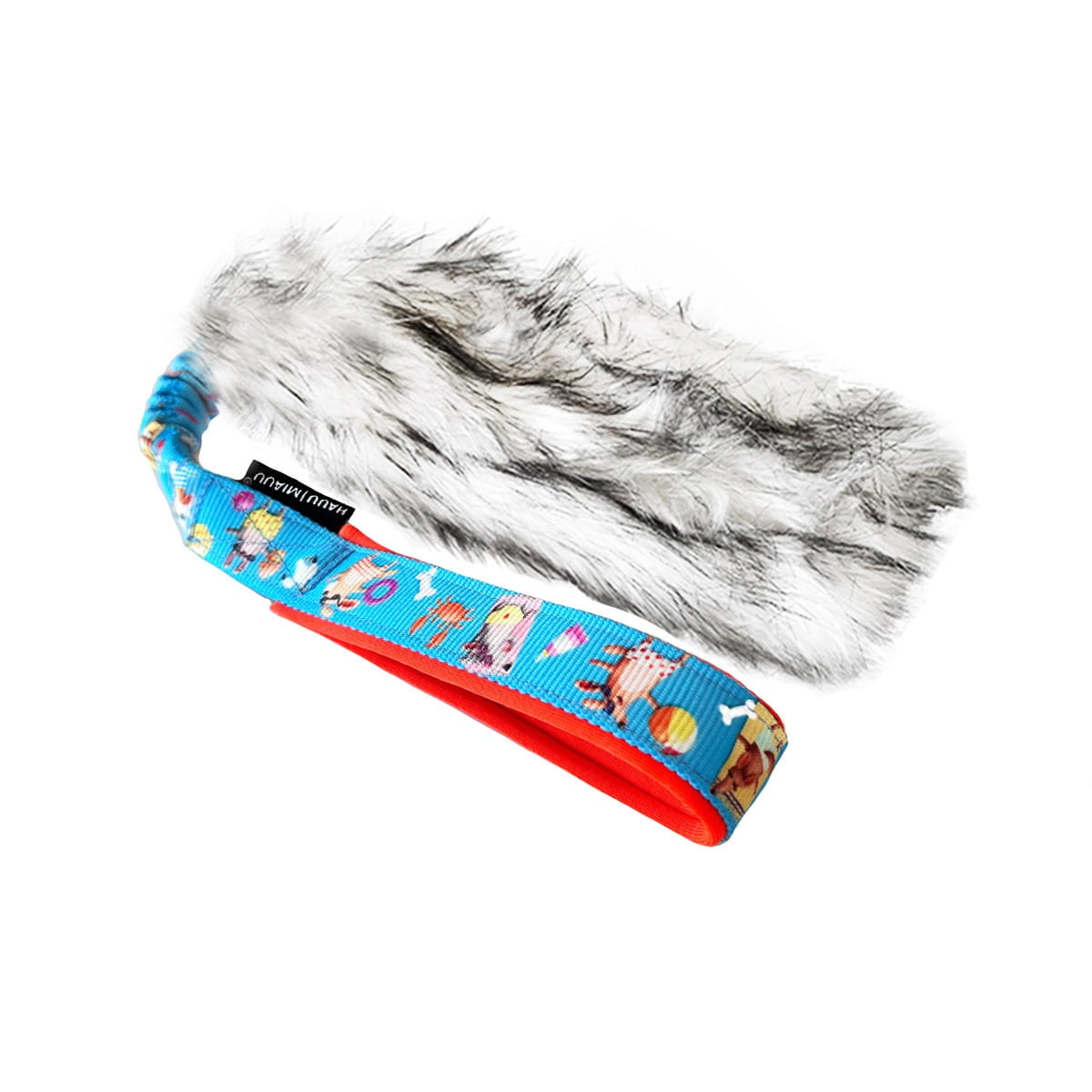 Niebieski szarpak w plażujące psiaki HAUU|MIAUU ® wykonany jest z najwyższą starannością, posiada solidny amortyzator i szwy oraz obfite, pokaźnych rozmiarów sztuczne futerko.